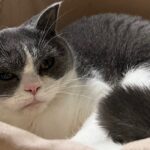 月末会議のあと、くつろいでいる福が柔らかい表情で横になっている様子